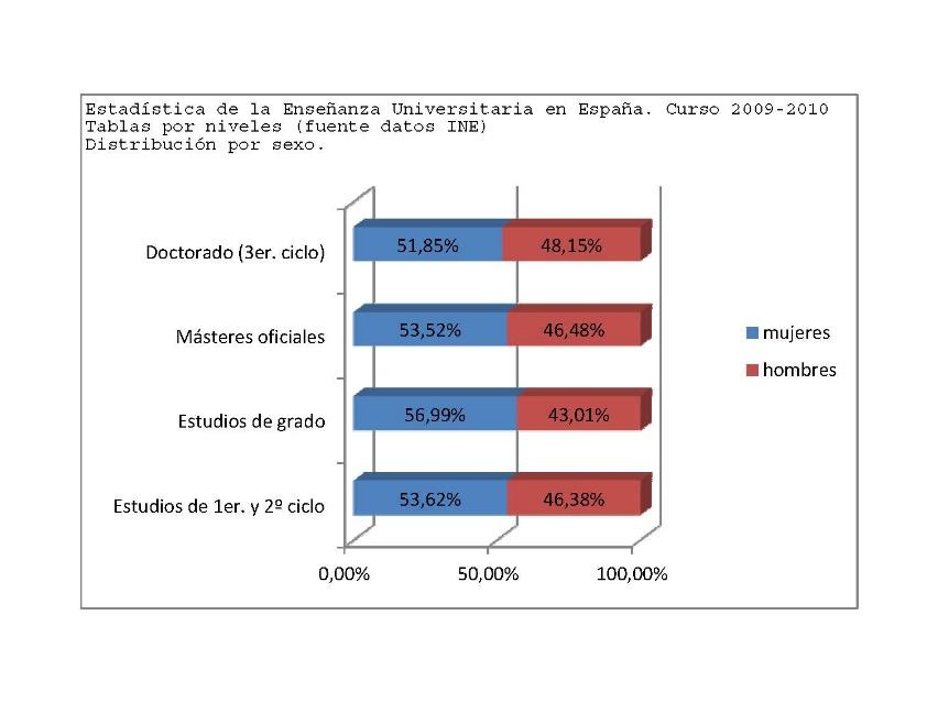 Y así ha pasado más de un siglo. Analizando datos de Instituto Nacional de Estadística de la Enseñanza Universitaria en España. Curso 2009-2010: