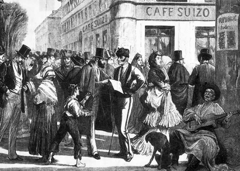_“¡quitadles los divanes de los cafés al siglo XIX y ese siglo pasará a ser ininteligible”_ decía Benito Pérez Galdós. ¿se dirá que no se entiende el XXI sin los grupos de Whatsapp?, al menos no se entenderá sin las redes sociales, sin la comunicación que nos brinda internet y que nos permite difundir ideas, muchas tonterías, pero muchas cosas interesantes también, foros en los que cada uno expone sus opiniones o sus conocimientos, son las tertulias de nuestro tiempo. En el XIX las tertulias de los cafés eran el foro de intercambio cultural, y para eso hacía falta que gente como los suizos Pedro Fanconi y Francisco Matossi apostaran por negocios como el que abrió sus puertas en la esquina de la calle Alcalá con Ancha de los Peligros (hoy Sevilla) tal día como hoy de 1845.