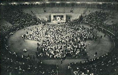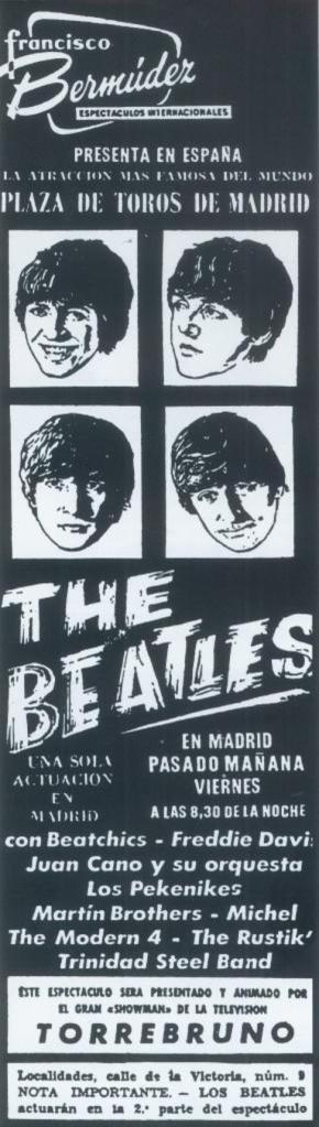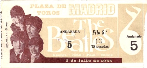 400 pelas las entradas de silla de pista, 75 las más baratas (el Salario de un peón era de 150 pts. al mes), una vigilancia policial extrema (y represión a todo melenudo), sobre todo después de unos días antes se habían ocasionado daños en equipos de la plaza cuando algunos esperando ver a los ingleses vieron salir al escenario a un grupo americano de nombre “The Beatles”, es lo que tiene la falta de información. Total solo 5.000 espectadores (pagando entrada), muchos más fuera de la plaza, y bastantes también consiguieron colarse entre ellos Micky (el de los Tonys) y sobre todo mucha policía.