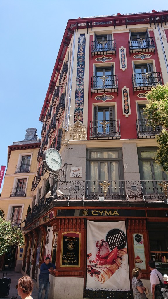 El dicho “esto parece la posada del peine”, referido a una casa o a cualquier lugar donde entra y sale mucha gente, recuerda a aquel establecimiento hostelero, uno de los primeros de la ciudad, fundado en la calle Vicario Viejo (no lo busquéis así en el googlemaps, que ahora es Marqués viudo de Pontejos, n.º 17). El negocio iba bien, en 1796, sus entonces dueños, los hermanos Espino, ampliaron el negocio adquiriendo el edificio de al lado que daba a la calle de San Cristobal, se amplió en 1863 y en 1891 se unió el contiguo que daba a la calle Postas, con su correspondiente reforma para dotarlo de tres plantas sobre el bajo y principal ya existentes, y con motivo del cuarto centenario del descubrimiento de América, dotarlo de un templete y un reloj, mira lo chulo que quedó