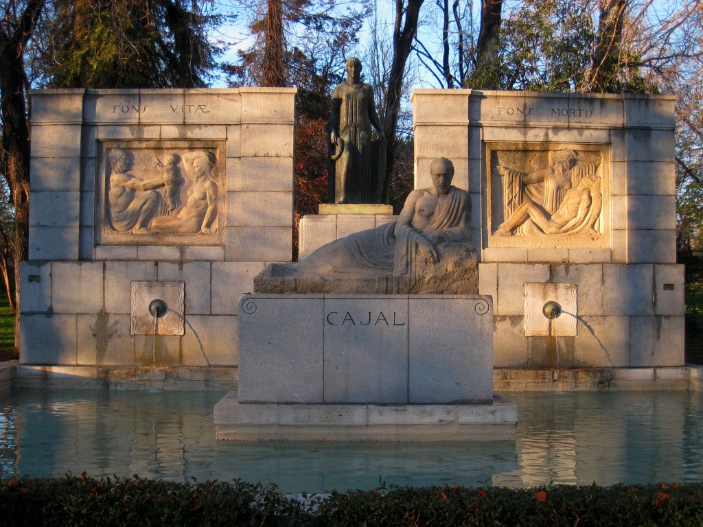 Tal día como hoy de 1926 se inaugura en el Paseo de Venezuela, dentro del Parque del Retiro de Madriz el monumento que Victorio Macho había dedicado al científico Santiago Ramón y Cajal. Según Carlos Pérez: «… este soberbio monumento de 1925-26 conjuga los recuerdos etruscos en clave purista en la figura del científico, conalegoria a la Ciencia y los espléndidos relieves alegóricos laterales (Fons Vitae y Fons Mortis)…«