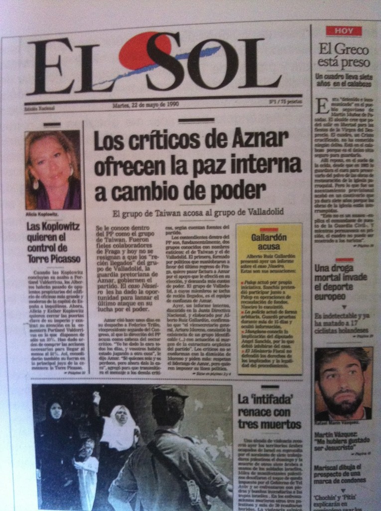 Tal día como hoy de 1990 en la redacción de El Sol, en la plaza de Colón de Madriz estaban de enhorabuena, el primer número del diario estaba en la calle, tras meses de trabajo, de diseño de la cabecera (con inspiración mirosiana, con dos manchas azul y naranja), de elección de los tipos de letra a utilizar.