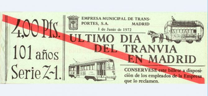 El tranvía en Madriz alcanzaría su máxima extensión en 1954 al llegar sus líneas a los 188 kilómetros de vías, con 512 vehículos ya alcanzados en 1953 (aunque muchos ya fuera de servicio), ya había empezado su declive, desde 1949 ya se habían eliminado de la Puerta del Sol dejando paso a los trolebuses. El tranvía que había convivido con el metro y los autobuses, parece estorbar cada vez más a los automóviles privados, el metro solapa las líneas tranviarias, los autobuses oruga de gran capacidad, la creación de carriles bus, van relegando al tranvía del que se van eliminando líneas, la EMT va dando prioridad a los autobuses, más rápidos, cómodos y flexibles, así que al final se colocó en los tranvías la siguiente nota: