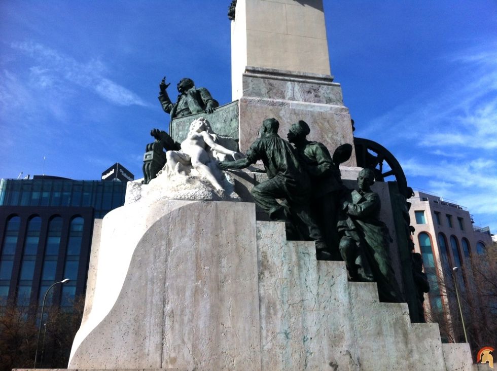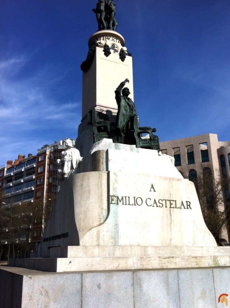 De antes de llegar al gobierno ya hemos hablado aquí de Emilio Castelar , y seguramente volvamos a hablar de él, cuando después de que Amadeo nos dejara diciendo aquello de «Ah, per Bacco, io non capisco niente. Siamo una gabbia di pazzi — No entiendo nada, esto es una jaula de locos» y se cumpliera su sueño de que España fuera una república. Pero hoy vamos a recordar también a un escultor, Mariano Benlliure, hemos hablado de algunas de sus obras, y hoy vamos a hablar de una muy especial que vemos muy a menudo, algunos todos los días, y sin embargo no reparamos en la intensidad de lo que representa.