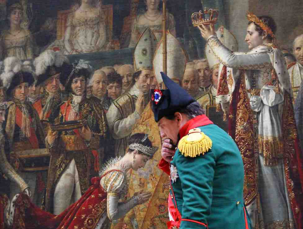 En estas lides, y como no podría ser de otra forma, Napoleon era todo un maestro. En su coronación como emperador de los franceses, en la Catedral de Notre Dame de Paris – 2 de marzo de 1804 -, supo desplegar toda una parafernalia y simbología de poder. Bonaparte era consciente de su condición de «advenedizo» y recién llegado a un «status social» ignoto para él, y por eso se preocupó mucho por los detalles de su coronación, encargando a su pintor favorito, Jacque louis David, la realización de un cuadro que pudiera recoger la magnificiencia y majestuosidad del acontecimiento.