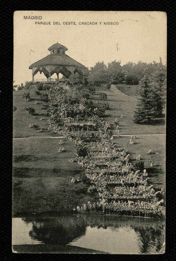 Tal día como hoy de 1905, domingo, se aperturó al público el Parque del Oeste, pero solo la primera fase (87 Ha, tampoco es poco) la zona donde está el Paseo de Camoens, la idea de convertir un vertedero en un parque ronda el Ayuntamiento de Madriz ya en 1875, en 1893 el alcalde Alberto Aguilera encarga al ingeniero agrónomo Celedonio Rodrigáñez y Vallejo, su diseño, con un estilo paisajista, tipo inglés, y una ría artificial de 600 metros (realmente no sé cuando se construyó pues no logro localizarla en los mapas históricos), como otros parques de los que ya hemos hablado aquí, continuó su construcción en los siguientes años, extendiéndose hasta el cuartel de la montaña, que se engulló entre los años 1956 y 1973 (donde hoy está el templo de Debod) a la izquierda del paseo del Pintor Rosales. En lugar de ser zona de esparcimiento para los madrileños, entre el 36 y 39 fue campo de batalla, lo que supuso tener que reconstruirlo en los años 40 (no es kiosco del que os pongo foto), pero ahí está, con su abuelo, un “cedrus atlántica”, cedro del Atlas árbol marroquí, de los que algunos ejemplares han vivido mil años.