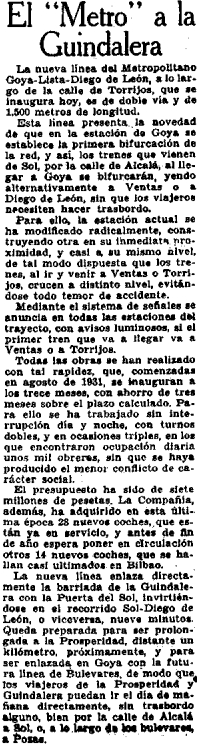 Realmente la obra de ingeniería era compleja, ya que existen dos cruzamientos que se solucionan con 4 túneles y 2 saltos de carnero a diferente nivel, cavando bajo edificaciones, de hecho Goya Bis, está debajo de los cimientos del edificio de Alcalá 96, y ejecutar esa obra hoy en día tiene su dificultad, pero hacerla en 1931 era echarle un par, le cojo prestado a Isidro Barqueros, un menda que está haciendo un doctorado sobre ferrocarriles.