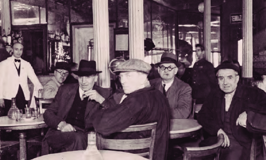 También frecuentaban este café artistas de teatro, y ocupaban estas mesas militares.
