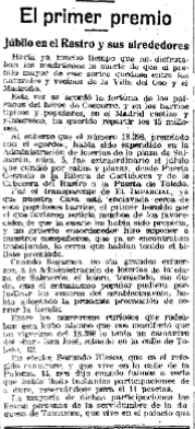 Tal día como hoy de 1905 un tercer premio recayó en el número 15,554, que había revendido en forma de participaciones el fosforero, Manuel Sevilla, del café de San Millán del que hablamos ayer , y él no se quedó con ninguna participación