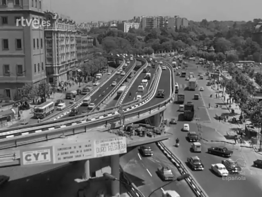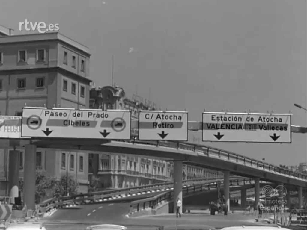 Glorieta de Carlos V, 21:00 horas, el excelentísimo alcalde D. Carlos Arias Navarro, el ministro de Obras Públicas, Sr. D. Federico Silva Muñoz, el director general de Promoción del Turismo, señor García Rodríguez-Acosta, en representación del ministro de Información y Turismo, varios delegados municipales y personal técnico del Ayuntamiento y de las empresas que han ejecutado la obra, Cubiertas y Tejados S.A y Sociedad Metalúrgica Duro-Felguera, suben por la pasarela entre el Paseo del Prado y Santa María de la Cabeza, pasan al ramal que une Prado y Delicias para detenerse en el centro, donde el Sr. Ministro corta la cinta, a partir de ese momento riadas de automóviles atravesarán esos pasos elevados .